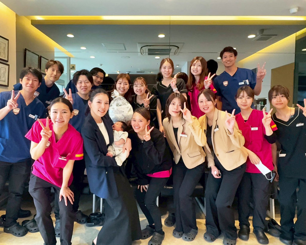• 産休中のスタッフさんが遊びに来てくれたので、みんなで記念撮影!