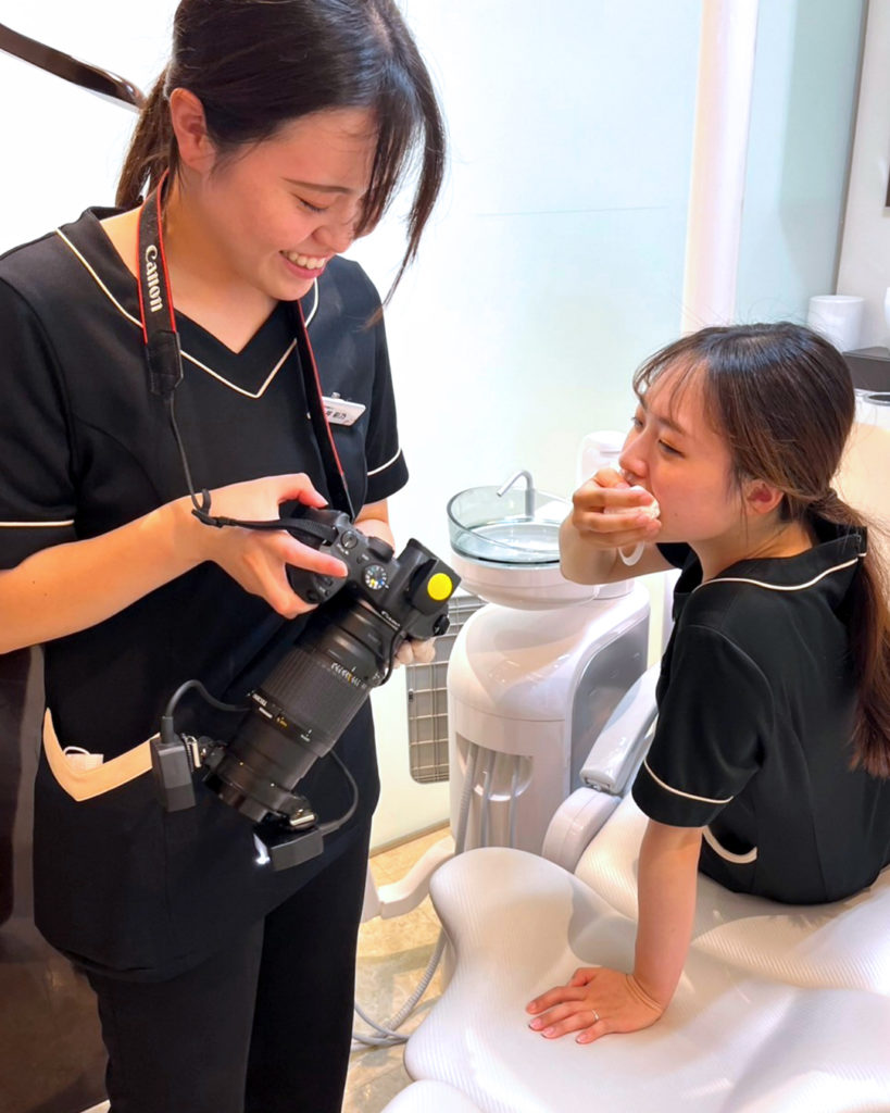 診療後にスタッフ同士で口腔内撮影を練習しました。