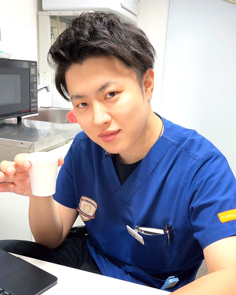 お昼休憩中にコーヒーで一息つく院長。