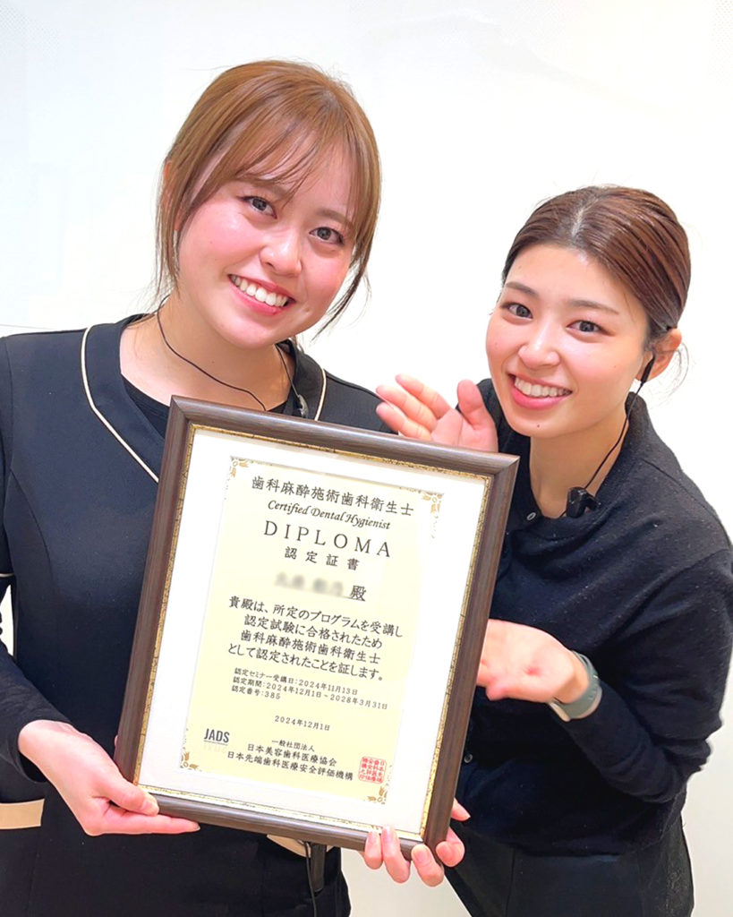 • 一般社団法人日本歯科医学振興機構が認定する資格「臨床歯科麻酔認定歯科衛生士」を取得しました!